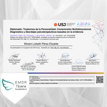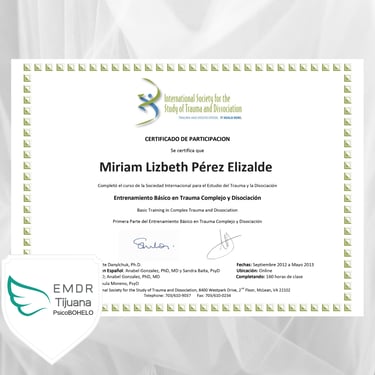 Cuenta con formación especializada en el abordaje del trauma complejo, procesos disociativos y estrés traumático continuo.